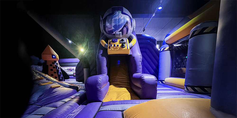 Embarquez pour un périple cosmique à travers notre immense structure gonflable à l’ambiance intergalactique. Traversez des tunnels stellaires, bondissez de planète en planète et vivez une aventure épique au cœur de l’univers.