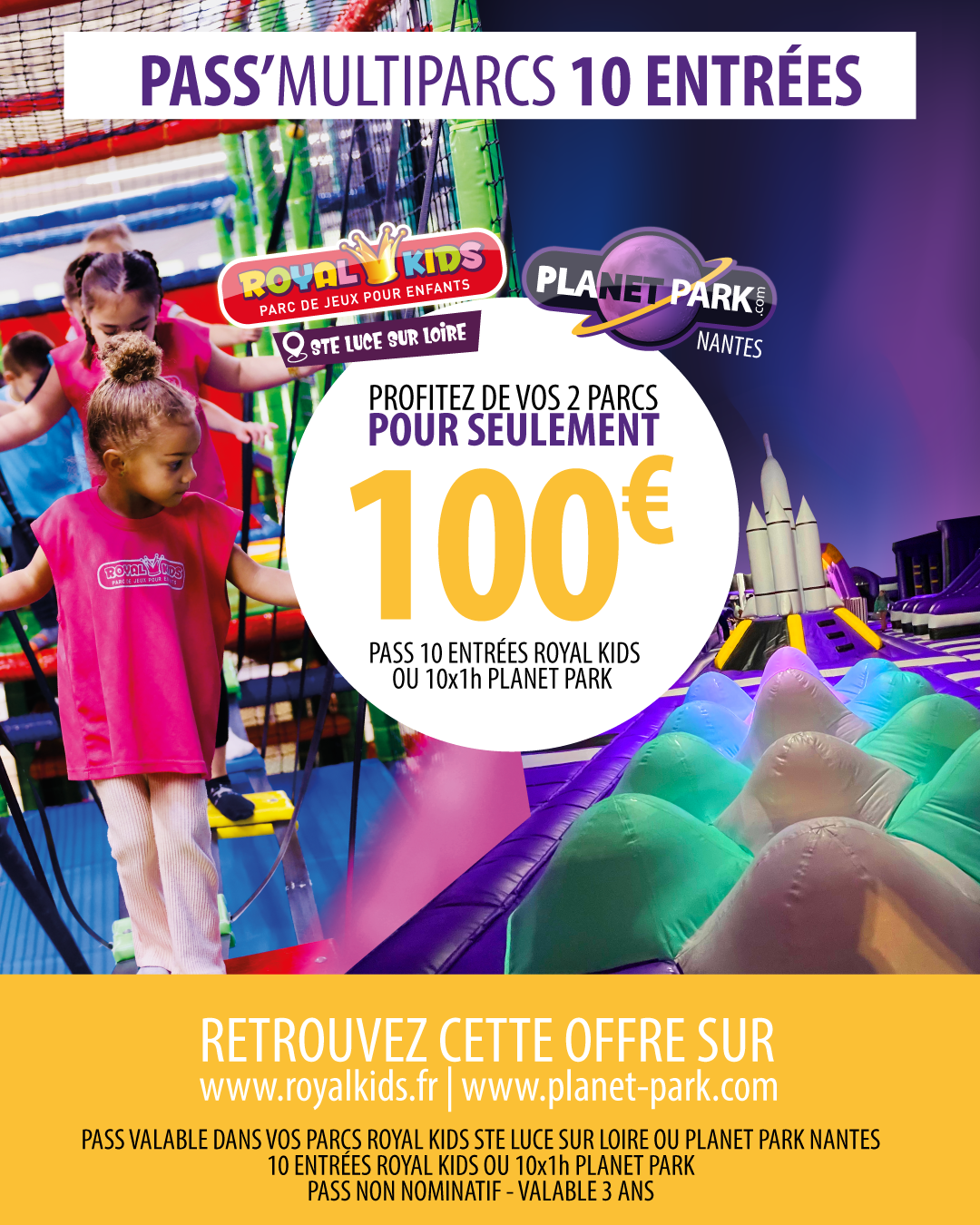 10 x 1h d'accès libre au parc - Prévoir chaussettes antidérapantes obligatoires.